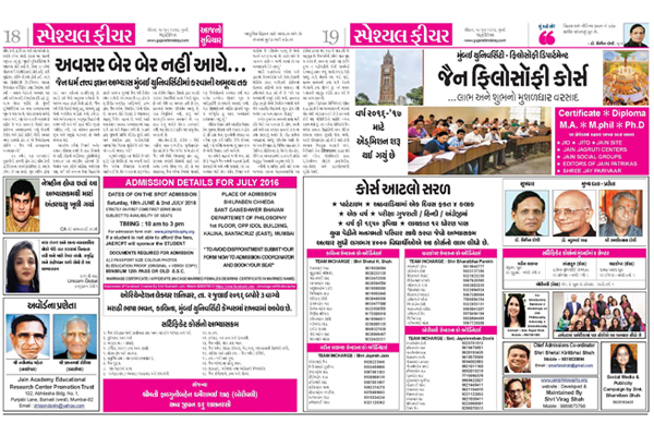 Initiated by Jain Academy (UK), JAERC-PT has established a permanent chair in the University of Mumbai in 2000. Shri Ramniklal